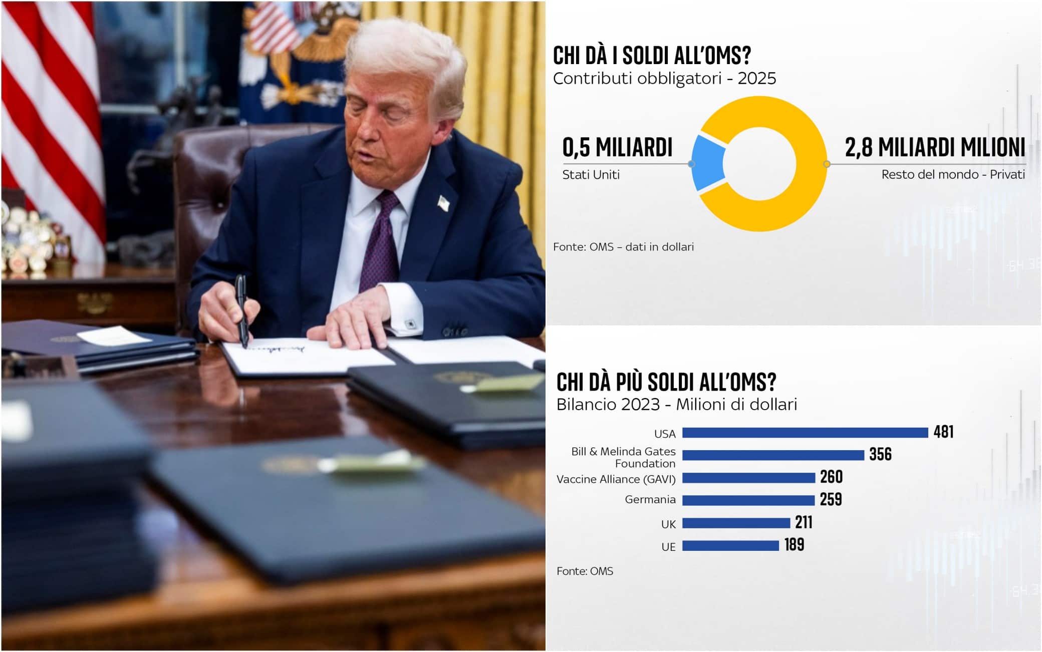 L’Oms è l’agenzia dell’Onu che si occupa di salute e gli Stati Uniti erano tra i suoi principali funzionari: ne hanno fatto parte per ben 77 anni. Fino ad oggi erano 194 gli Stati membri, l’Italia ha aderito al Trattato istitutivo l’11 aprile 1947. Anche il Presidente argentino Milei ha annunciato la stessa decisione il 5 febbraio 2025.