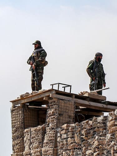 Il personale di sicurezza dei talebani vigila nei pressi della linea Durand nel distretto di Gurbuz, nella provincia di Khost, il 27 febbraio 2026, in seguito ai combattimenti transfrontalieri notturni tra Pakistan e Afghanistan. (Getty)