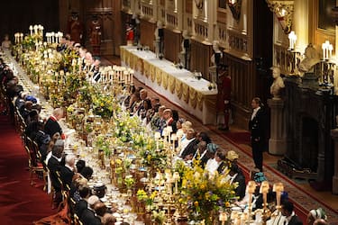 - Il banchetto si è svolto attorno al tavolo di mogano già caro alla regina Elisabetta II nella Windsor Great Hall, adornato con splendidi fiori di primavera provenienti dal parco di Windsor. Dopo la cena, i fiori sono stati donati all'associazione benefica Flower Angels, legata alla regina Camilla, che li ha poi distribuiti a residenze per anziani e ospedali. Un tocco di calore umano in un contesto di rigida cerimonia istituzionale.