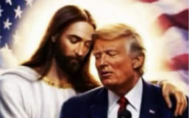 Poco dopo, un'altra provocazione da parte di Trump che ha pubblicato di nuovo un post con una foto che lo ritrae accanto a Gesù, che lo abbraccia mentre lui poggia la sua testa su quella del messia. Dietro a loro una bandiera americana che si sfuma in una luce abbagliante. Il tycoon ha ripostato il contenuto condiviso da un altro utente scrivendo: "Ai folli della sinistra radicale potrebbe non piacere, ma io penso che sia piuttosto carino!". Il post originale è di un account che si chiama 'Irish for Trump' e dice: "Non mi sorprende che con tutti questi mostri satanici, assassini di bambini, Dio si giochi la carta Trump".