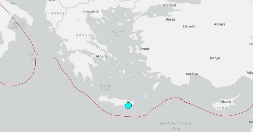 Un terremoto di magnitudo 5.8 ha colpito la costa dell'isola greca di Creta, stando a quanto riportato dall'US Geological Survey (USGS). Non ci sono state segnalazioni immediate di vittime o danni. La scossa, in particolare, si è verificata ad una profondità di circa 13 chilometri (8 miglia), a circa 11,5 chilometri a sud-est di Ierapetra, cittadina sulla costa di Creta. Il sisma è stato registrato quando in Italia erano le ore 5,18.