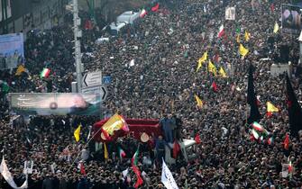 GENNAIO 2020 - L'anno si è aperto con la morte del generale iraniano Qassem Soleimani il 3 gennaio, in un attentato a Baghdad. Alcuni giorni dopo, al suo funerale, hanno partecipato migliaia di persone (nella foto piazza Enqelab-e-Eslami a Teheran)