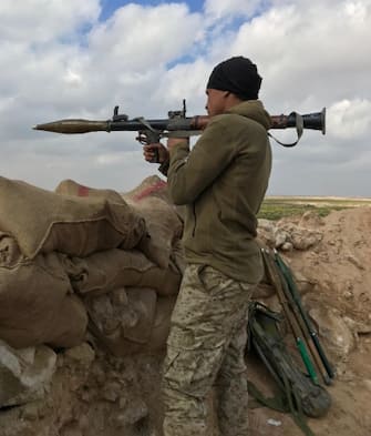 Micalizzi, 34 anni, è rimasto ferito alla testa nella provincia di Dayr az Zor, mentre le forze filo-Usa stavano combattendo contro centinaia di miliziani dell’Isis asserragliati negli ultimi villaggi occupati. Queste foto sono state scattate nella piana di Baghuz, in Siria, vicino al confine con l’Iraq -