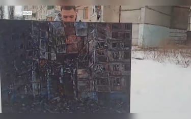 Ucraina, palazzi bombardati a Kharkiv vengono dipinti