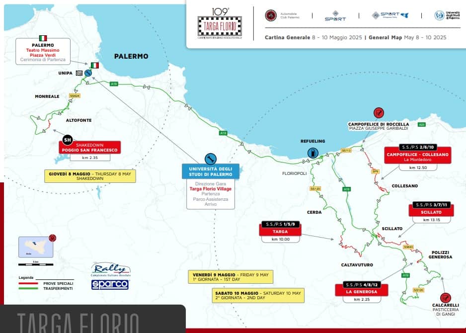 109esima edizione della gara automobilistica più antica del mondo che si svolgerà dall’8 al 10 maggio 2025 in Sicilia. L’edizione 2025 vedrà protagoniste le vetture storiche della Targa Florio Historic rally e Rally auto storiche di regolarità, che ripercorreranno le leggendarie strade delle Madonie, e le moderne auto da rally, pronte a sfidarsi nei difficili tracciati della competizione
