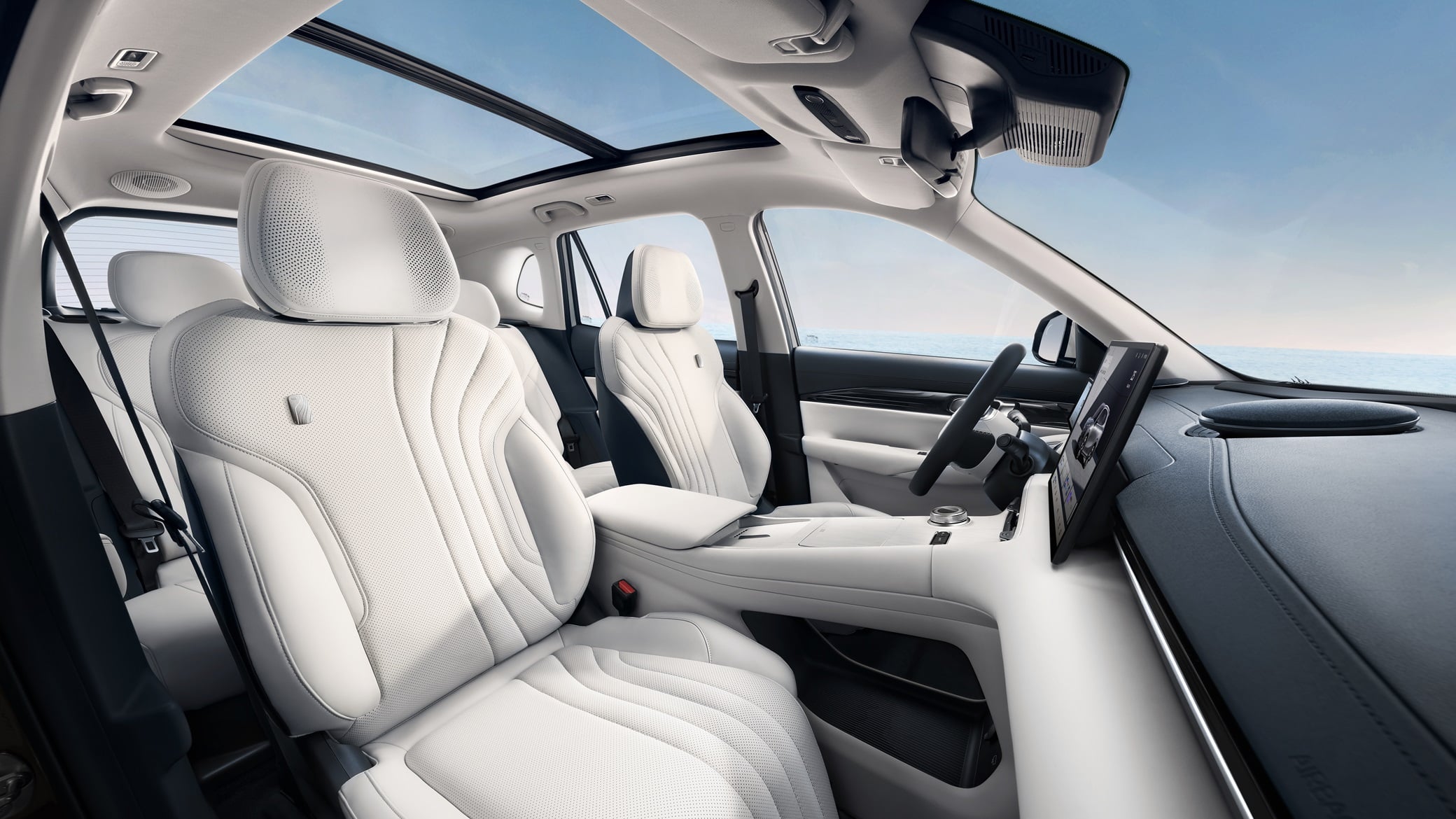 A bordo ritroviamo un volante di forma ottagonale e leggermente schiacciata che lo fa assomigliare per certi versi ad un joystick per il gaming. Doppio display di dimensioni generose come su molte cinesi, con il cruscotto da 10,2’’ a cui si aggiunge l’Head-up Display e il touch centrale da 15,4’’. L’abitacolo è spazioso con spazio a sufficienza per cinque persone. Confort e sicurezza dominano l’esperienza al volante, con una buona insonorizzazione e la scelta di materiali comodi per le sedute e piacevoli al tatto per quel che riguarda i rivestimenti.
