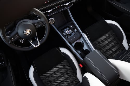 - All'interno l'interfaccia è completamente digitale con doppio display da 12,3’’ e 10,25’’. Migliorano i materiali delle finiture e ci sono due nuove colorazioni dei sedili: pelle rossa o Alcantara bianco e nero per la versione di lancio Milano Cortina 2026, in partnership con i Giochi Olimpici invernali.