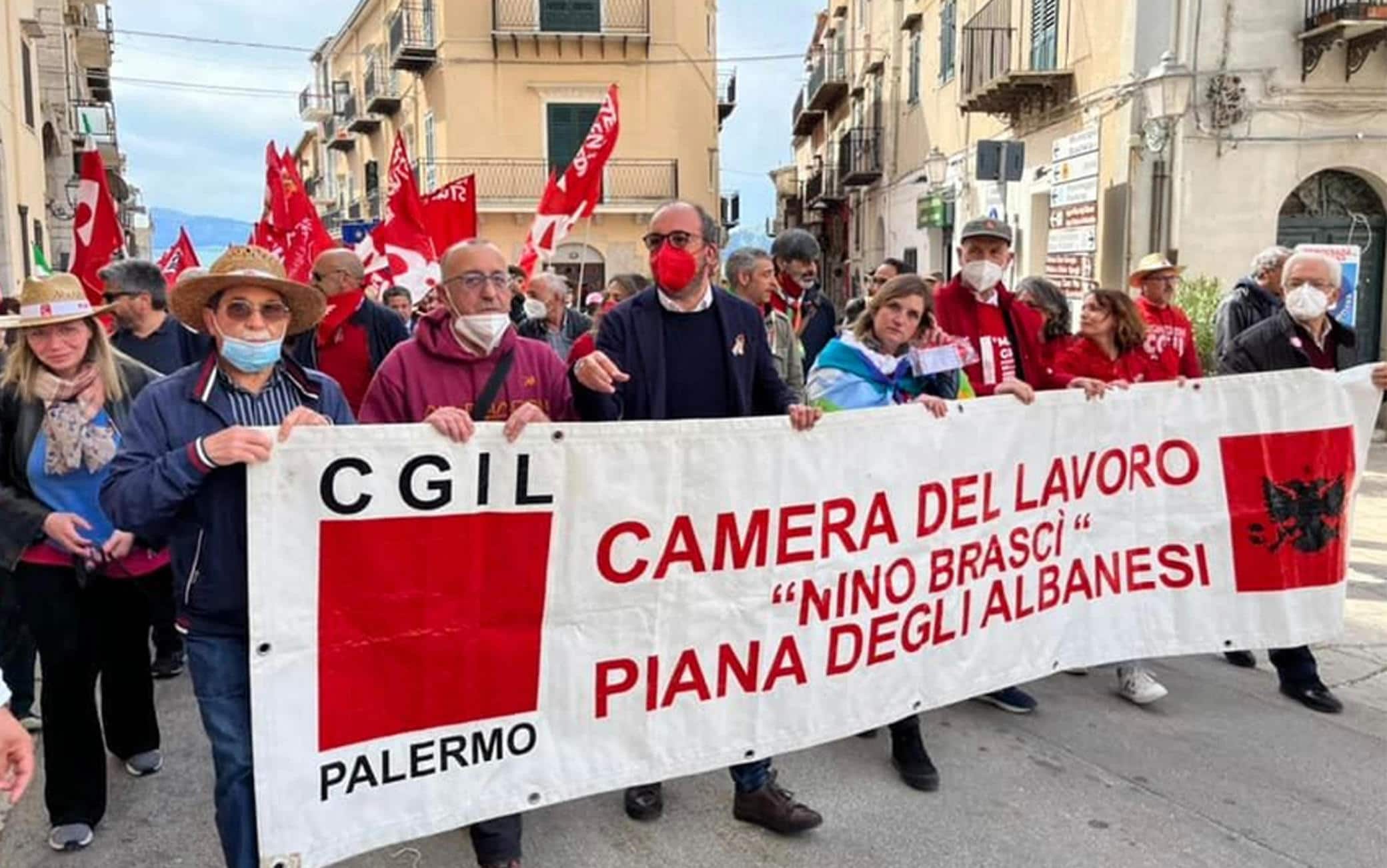 Poi il corteo, accompagnato dalla banda di Mezzojuso che ha intonato "Bella ciao", è partito dalla Casa del Popolo diretto al pianoro di Portella, memoriale della strage. Al Sasso di Barbato la cerimonia, introdotta dalla lettura dei nomi delle vittime da parte del novantenne Serafino Petta, uno dei sopravvissuti all'eccidio. I saluti istituzionali sono stati affidati a Maria Modica, responsabile della Camera del Lavoro di Piana degli Albanesi, al segretario generale Cgil Palermo Mario Ridulfo e alle conclusioni del segretario generale Flai Cgil Giovanni Mininni. "Una manifestazione - si legge in una nota del sindacato - che, oltre a rivendicare il lavoro e a chiedere, come ogni anno, che sia fatta verità e giustizia sulla prima strage di Stato dell'Italia repubblicana, quest'anno è improntata sui temi della pace". L'appello per un 1 Maggio per il Lavoro e per la Pace diffuso dalla Cgil ha ricevuto più di sessanta adesioni da parte di associazioni e realtà del mondo laico e cattolico.