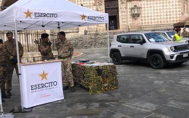 (ANSA) - PERUGIA, 28 NOV - E' stato presentato nel cuore del centro storico di Perugia, in Piazza IV Novembre, il nuovo parco macchine in dotazione al reparto 'Raggruppamento Umbria e Marche' dell'Esercito, nell'ambito dell'operazione 'Strade Sicure', con responsabilità di vari siti, fissi e mobili, dislocati nelle città più importanti dell'Umbria e delle Marche e, in particolare, nelle zone colpite dal sisma. Si tratta di cinque Jeep Renegade, con quatto ruote motrici, auto a basso consumo, che rispondono a criteri di economicità, ma anche più idonee per il servizio di controllo del territorio a supporto in maniera complementare e sussidiaria delle forze dell'ordine.