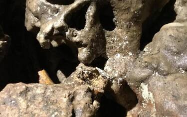 (ANSA) - AVIGLIANO UMBRO (TERNI), 30 GEN - Il cranio di un uomo, presumibilmente morto in giovane età e vissuto almeno 6 mila anni fa, dunque in età preistorica, parzialmente inglobato alla base di una stalagmite alta circa 80 centimetri: è quanto hanno scoperto gli speleologi all'interno della Grotta Bella di Avigliano Umbro, cavità a 530 metri di altitudine sulle pendici calcaree del Monte L'Aiola.