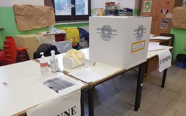 Soluzioni igienizzanti per le mani e guanti monouso accanto alle schede elettorali nei 509 seggi, insediati per le elezioni suppletive, in programma domenica, relative al collegio uninominale Umbria 2 del Senato, indette dopo le dimissioni di Donatella Tesei, indipendente in quota Lega, eletta residente della Regione.