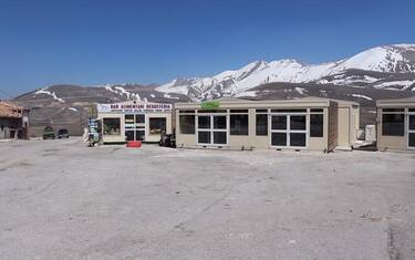 (ANSA) - NORCIA (PERUGIA), 11 APR - Castelluccio di Norcia è di nuovo un borgo fantasma. Gli unici suoni di vita sono quelli della natura e il rumore dei trattori che seminano la lenticchia sul Pian Grande.