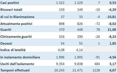 Sono infatti 1.329 persone (+7 dopo tre giorni di più uno) positive.
