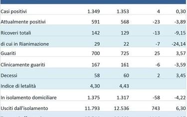 Le persone in isolamento domiciliare sono 1.317 (-58). Sempre alla stessa data, risultano 12.536 (+743) persone uscite dall'isolamento.