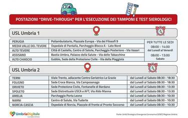(ANSA) - PERUGIA, 21 SET - "Abbiamo approvato un nuovo modello organizzativo del 'drive-through' che ci consentirà di incrementare l'efficacia e l'efficienza del sistema di sorveglianza umbro. Il modello drive through ha infatti dimostrato la piena validità nell'interrompere la catena dei contagi da Covid 19 ed è per questo che abbiamo puntato ad allargare la platea dei destinatari e quasi a raddoppiare le sedi di prelievo in cui oltre al tampone orofaringeo si eseguiranno test rapidi": lo ha detto l'assessore regionale alla Salute Luca Coletto. Al servizio si accederà su prenotazione.