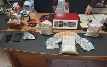 A quel punto i carabinieri hanno svolto le perquisizioni personale e veicolare. All'interno del bagagliaio della vettura e in un cassetto dell'abitacolo sono stati trovati tre panetti, avvolti in cellophane, di cocaina, per un peso complessivo pari a oltre 3 chili, due telefoni cellulari, materiale per il taglio e il confezionamento della sostanza stupefacente e la somma contante di 830 euro, ritenuta presumibile provento dell'attività di spaccio. (ANSA).