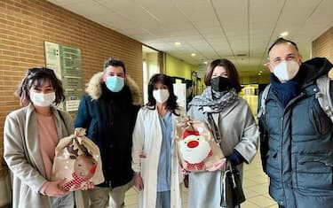 (ANSA) - FOLIGNO (PERUGIA), 06 GEN - Delle calze della Befana contenenti materiale didattico (come quaderni, penne e colori) per i bambini ricoverati nel reparto di Pediatria dell'ospedale di Foligno e dei panettoni che saranno offerti al personale sanitario che lavorerà nella giornata dell'Epifania. Li ha donati l'attrice e regista Irene Antonucci insieme all'associazione amici di Spello, rappresentata dal presidente Gianluca Insinga e dalla vice Stella Bertini, e allo Studio 4 Fold, con Marco Mezzenga. A riceverla è stata Beatrice Messini, responsabile della Pediatria dell'ospedale di Foligno.
