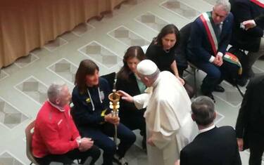 (ANSA) - NORCIA (PERUGIA), 23 FEB - Papa Francesco ha benedetto la fiaccola benedettina di Norcia, nel corso dell'udienza generale svoltasi nell'aula Paolo VI in Vaticano.