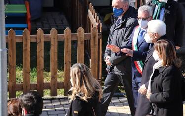 Parlando con la signora Carla che vive lì e che gli chiedeva di voler tornare a casa sua, il presidente le ha replicato: "ha ragione, la casa è importante". (ANSA).
