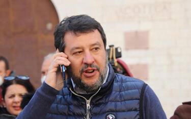 (ANSA) - ASSISI (PERUGIA), 28 FEB - Visita al Sacro Convento di Assisi del leader della Lega Matteo Salvini. Che sulla tomba di San Francesco ha pregato per la pace in Ucraina.