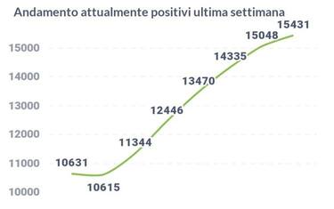 Sono al momento 15.431 i positivi, con un aumento del 2,5 per cento nell'ultimo giorno.