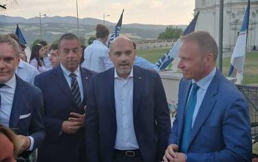 Con lui sul palco i parlamentari Emanuele Prisco e Franco Zaffini, il presidente del Consiglio regionale Marco Squarta e il sindaco Antonino Ruggiano.
