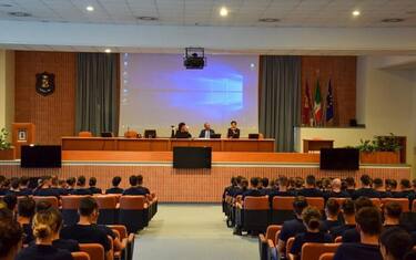 Prima dell'incontro, si è svolta la cerimonia solenne dell'alzabandiera alla presenza del personale del quadro permanente e degli allievi agenti del corso di formazione.
