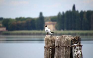 Ma il lago che non si arrende alla siccità è rappresentato pure da quella moltitudine di fauna che da sempre lo popola. I nidi, ad esempio, in acqua di alcuni uccelli, a pochi metri dalla riva, regalano emozioni. (ANSA).