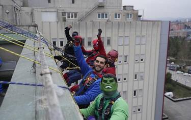 (ANSA) - PERUGIA, 22 DIC - I supereroi si sono calatati dal tetto dell'ospedale di Perugia e del residence "Daniele Chianelli" per regalare ai bambini ricoverati e ai piccoli ospiti della struttura che li accoglie insieme alle loro famiglie un'esperienza emozionante. Super Girl, Capitan America, Spiderman, Ironman e Hulk hanno poi distribuito i regali a tutti i presenti al reparto di Oncoematologia pediatrica che per l'occasione è diventato un "covo" grazie all'allestimento realizzato da Grafox nell'ambito del progetto Grafox Schhol.
