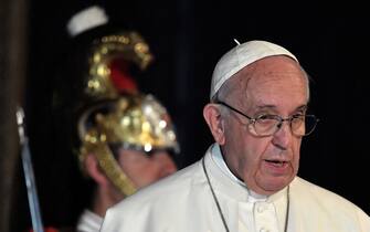 Il pontefice è arrivato nel cortile del Quirinale a bordo di una Ford Blu. Ad accoglierlo il presidente della Repubblica Sergio Mattarella, i Carabinieri a cavallo, un reparto speciale dell'esercito, la banda musicale e un folto gruppo di bambini delle zone terremotate invitati all'evento