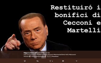 Come già accaduto nella campagna elettorale per le elezioni politiche del 2013, anche in questo election day è tornato il Berlusconi che promette qualcosa. Chiaramente il tono dei post è sarcastico e volto a ironizzare sulle promesse che si fanno nelle settimane che precedono il voto. Come questo, in cui il leader di Forza Italia promette di restituire i bonifici ai parlamentari grillini protagonisti dei mancati rimborsi al fondo sul microcredito (Foto dalla pagina Twitter di Filippo Lo Verde) –