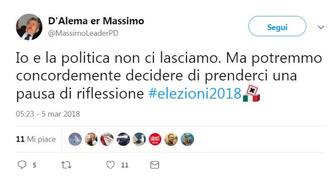 Non manca l’ironia neppure nei confronti di Massimo D’Alema dopo il non proprio brillante risultato elettorale (Foto: Twitter) -