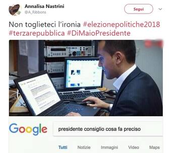 Arrivano i primi verdetti dell’election day del 4 marzo: entusiasmo tra i vincitori e sconforto tra gli sconfitti, nessuno è pero stato risparmiato dalla satira sui social. Luigi Di Maio cerca su Google come si fa il primo ministro, Matteo Renzi medita di partire per Las Vegas: ecco i migliori post su Twitter e Facebook (Foto: Twitter) -