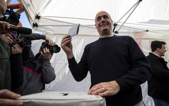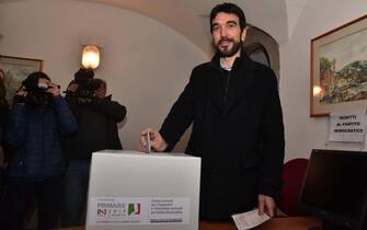 Il presidente della Regione Lazio Nicola Zingaretti ha votato al gazebo di Piazza Mazzini, a Roma. Indossava una maglietta con la scritta: 'If something is worth fighting for, you stand and you fight. So, I'm standing' ('Se c'è qualcosa per cui vale la pena combattere, ti alzi e combatti. Quindi, sono in piedi') -