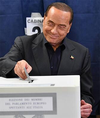 Il leader di Forza Italia Silvio Berlusconi ha votato per le elezioni europee a Milano, nel seggio allestito presso la scuola media di via Scrosati, nel quartiere Lorenteggio