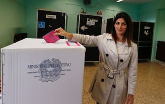 La sindaca di Roma Virginia Raggi è andata a votare nel seggio allestito in una scuola del quartiere Ottavia, dove abita