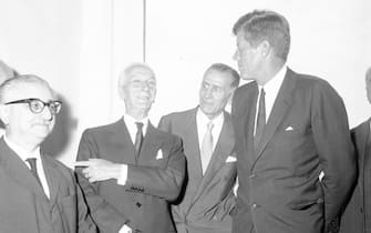 Il primo vero esecutivo "balneare" è stato il I governo Leone del 1963 (anche se è stato definito così solo in seguito). Dopo le elezioni politiche di maggio il presidente della Repubblica aveva affidato l'incarico di formare il governo ad Aldo Moro: l'accordo di coalizione con il Psi guidato da Pietro Nenni viene però bocciato dal comitato centrale del partito socialista e il leader Dc rimise il mandato. Nella foto, la visita del presidente degli Stati Uniti John F. Kennedy