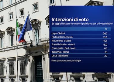 Una ipotetica “Lista Conte”, in questo momento, raccoglierebbe il 14,3% delle preferenze. L’eventuale partito dell’attuale premier sarebbe il quarto più votato dietro Lega (26,3%), Pd (16,5%) e Fdi (15,4%). Il dato emerge dal sondaggio realizzato dall'istituto di ricerca Quorum/YouTrend per Sky TG24. Conte risulta essere anche al secondo posto tra i leader in cui gli italiani ripongono maggior fiducia col 57,1% dei consensi. Prima di lui l’ex presidente della Bce Mario Draghi col 59,3% (LA RILEVAZIONE YOUTREND PER SKY TG24 - LE GRAFICHE - LE REAZIONI: PLAYLIST).