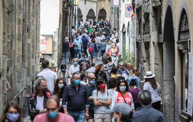 Coronavirus, fase 3: a Bergamo tornano i turisti per le strade. FOTO