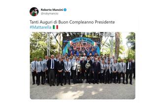 Il Ct Roberto Mancini è stato tra i primi a twittare facendo gli auguri a Sergio Mattarella con la foto del recente incontro al Quirinale poco dopo la vittoria dell’Europeo a Wembley
