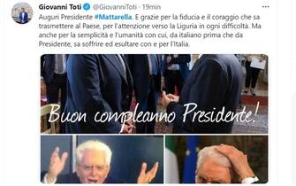 Il messaggio su Twitter del presidente della Regione Liguria, Giovanni Toti