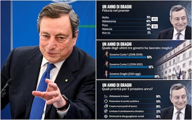 Dopo un anno di governo, la fiducia nel premier Mario Draghi è al 60%. È quanto emerge da un sondaggio Quorum/YouTrend per Sky TG24