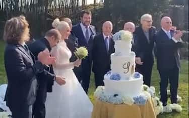 In posa per le fotografie di rito: al centro i festeggiati, Marta Fascina e Silvio Berlusconi. Alla sinistra, dopo il Cavaliere, ci sono Gianni Letta, Fedele Confalonieri e Vittorio Sgarbi. Alla destra, vicino alla festeggiata, in abito bianco di pizzo francese firmato da Antonio Riva e con un bouquet in mano, posano Paolo Berlusconi e Ivo Radaelli, architetto del Cavaliere. Sono le prime immagini (in alto il video) della festa della coppia Berlusconi-Fascina che si è tenuta ieri a Villa Gernetto.