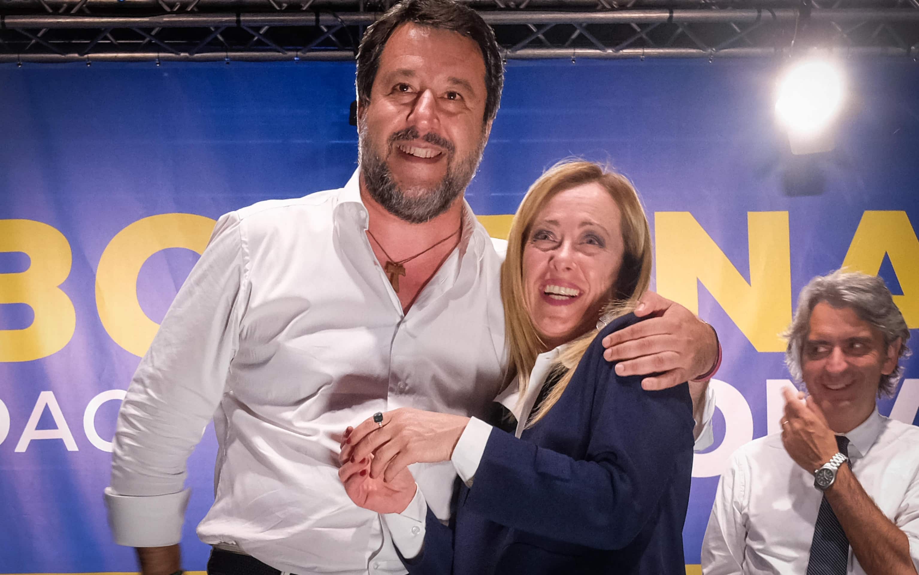Scoppia la pace, sugellata da un abbraccio, tra i leader di Lega e Fdi. Un segnale di coesione tra i due, che nei giorni scorsi, a distanza, si erano scontrati sulla supremazia e sugli equilibri nel centrodestra