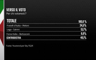 Elezioni, sondaggio Quorum/YouTrend per Sky TG24: intenzioni di voto premiano FdI e Pd