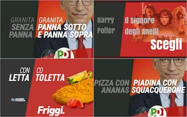 All'interno della campagna elettorale, il Pd ha lanciato una serie di grafiche con concetti di significato opposto, uno su sfondo nero e l'altro su sfondo rosso, con la parola "scegli" davanti alla foto del segretario del partito Enrico Letta. Tra le proposte, per esempio, c'è "lavoro sotto pagato" -sfondo nero- o "salario minimo" -sfondo rosso- (come nella foto). L'idea è però subito rimbalzata sui social con tantissimi utenti che hanno dato libero sfogo alla loro fantasia per ironizzare sul modello grafico