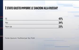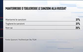 Si equivalgono invece le percentuali di chi pensa che le sanzioni alla Russia vadano mantenute e di chi ritiene invece che vadano rimosse