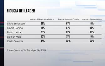 Poi Silvio Berlusconi (31%), Emma Bonino (24%), Enrico Letta (23%), Luigi Di Maio (20%) e Carlo Calenda (17%)