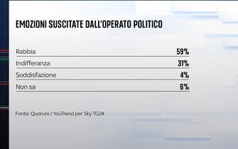 L'operato politico in generale però suscita rabbia nel 59% degli italiani e indifferenza nel 31%. Solo il 4% esprime invece soddisfazione