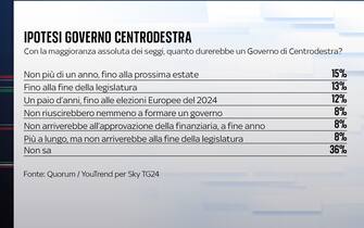 Dal sondaggio emerge lo scetticismo degli italiani sulla solidità di entrambe le coalizioni e sull’effettiva capacità dei leader di tenere salda la guida. Secondo il 16%, un governo di Centrodestra potrebbe non arrivare a Natale